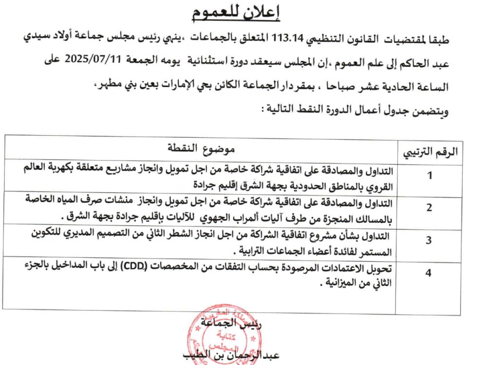 برنامج عمل الجماعة، اتفاقية لتمويل و انجاز مشروع التطهير السائل