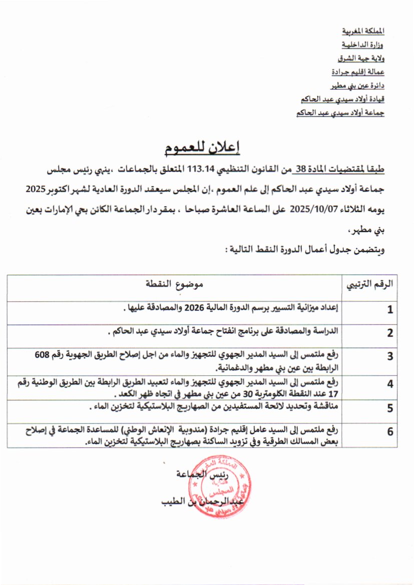 جدول أعمال الدورة العادية لشهر اكتوبر 2025